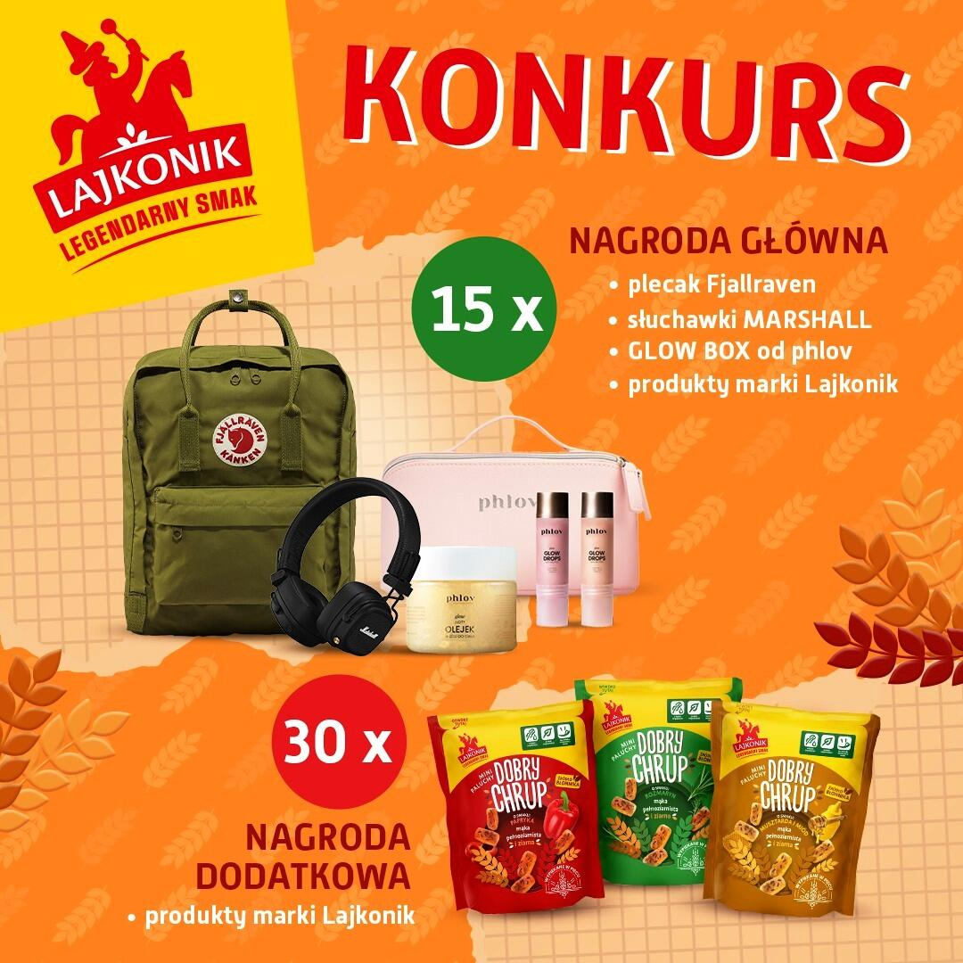 - 15x plecak Fjallraven + słuchawki Marshall + Glow box marki phlov + zestaw produktów Mini Paluchy Dobry Chrup o łącznej wartości 1190 zł