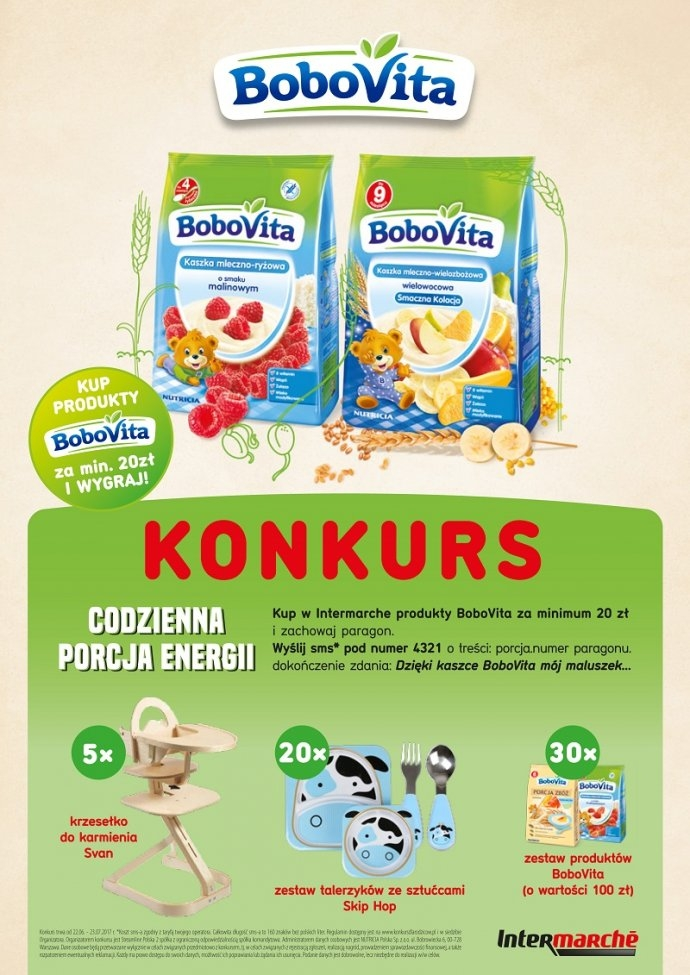 Kup w Intermarche produkty Bobovita za min.20zł, zachowaj paragon. Dokończ zdanie: