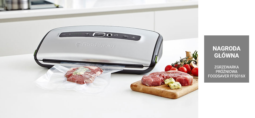 - I MIEJSCE -Nagroda główna – zgrzewarka FoodSaver FFS016x, która pomoże Ci zachować świeżość przechowywanych produktów przez dłuższy czas.