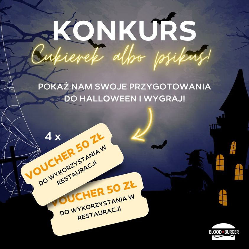 4 vouchery po 50 zł do wykorzystania w restauracji Blood Burger (do zrealizowania w ciągu 3 tygodni od dnia ogłoszenia wyników)