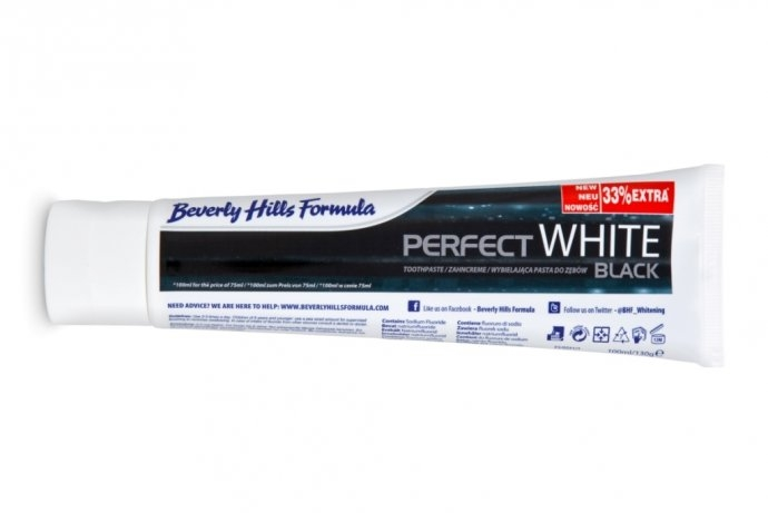 5 zestawów trzech past Beverly Hills Formula – Perfect White Black, Perfect White Black Sensitive i Perfect White Gold o łącznej wartości 75 złotych.