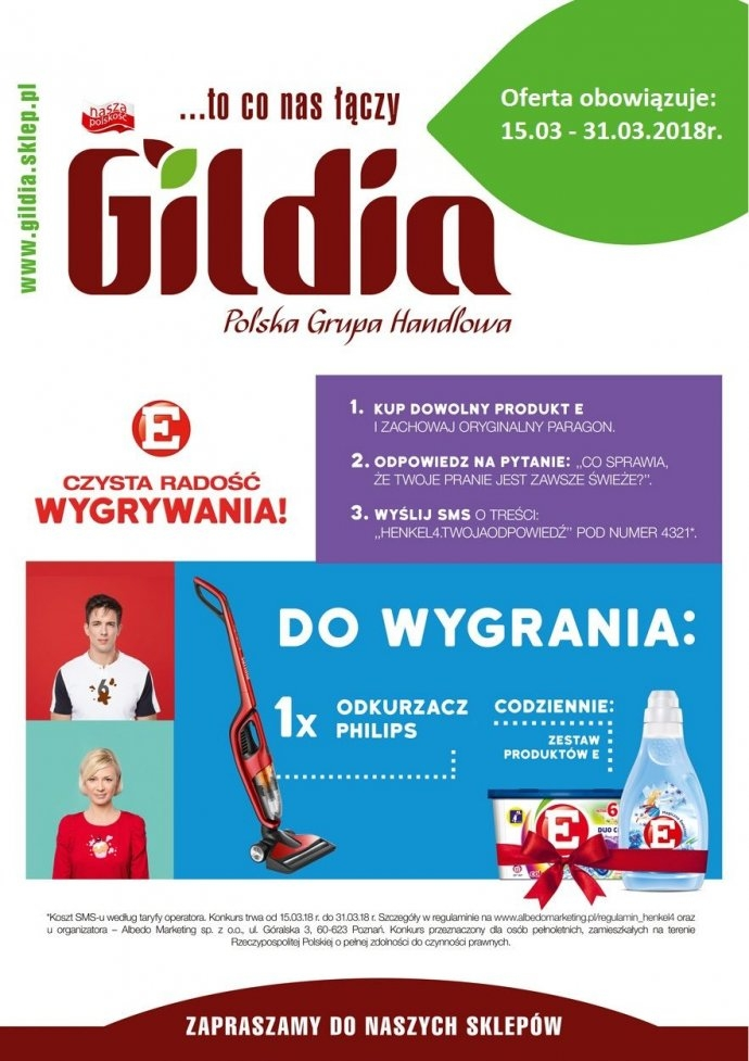 - Kup dowolny produkt "E" w sklepach Gildia, Drogeria Marysieńka, SAM SCAN, Delikatesy Doroty w dniach 15-31 marca