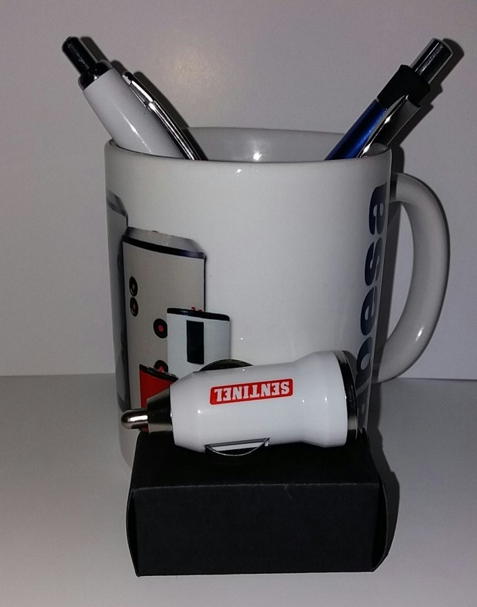 - kubek i długopis od firmy Ciepło-Tech, dystrybutora galwanicznych uzdatniaczy wody Uzdatniacz Wody Energy WATER