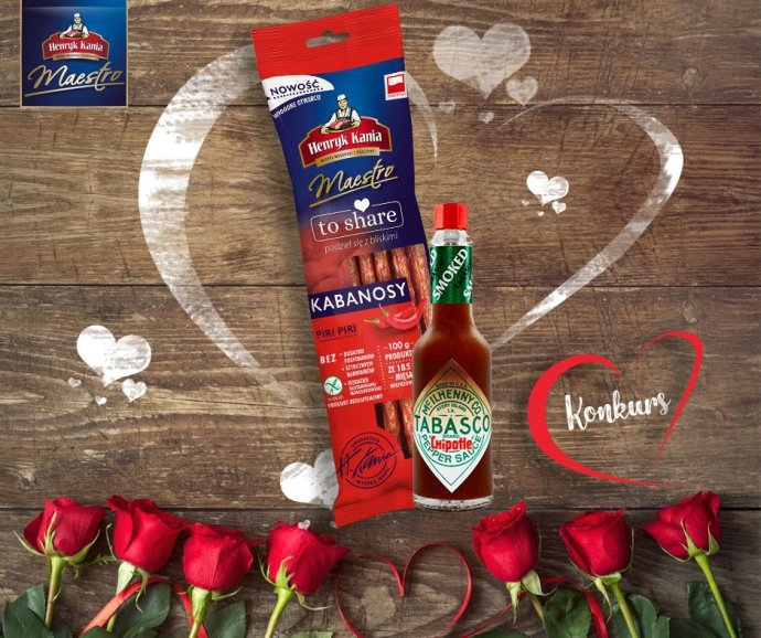 - W komentarzu do posta napiszcie jakie danie przygotujecie swojej drugiej połowie na kolację walentynkową. W swoim pomyśle uwzględnijcie Kabanosy Maestro oraz TABASCO Green Pepper Sauce.