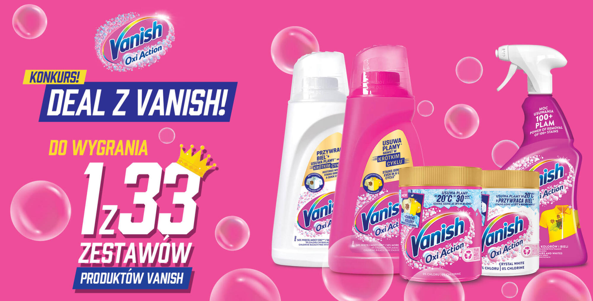 Aby wziąć udział w konkursie, należy kupić w sklepie DEALZ dowolny produkt Vanish, zachować paragon, nagrać krótki i kreatywny film wideo lub rolkę pokazującą, czym jest dla Ciebie „Deal z Vanish”, a następnie opublikować ją na swoim publicznym koncie na Instagramie lub TikToku z hashtagiem #DEALZVANISH.
