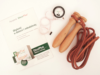 Zestawy DICOPLUS. W skład zestawu wchodzi skakanka, miarka BMI i poradnik DICOPLUS.