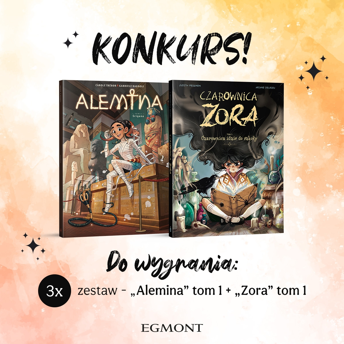 3x zestaw „Czarownica idzie do szkoły. Zora. Tom 1” i „Ścigana. Alemina. Tom 1”