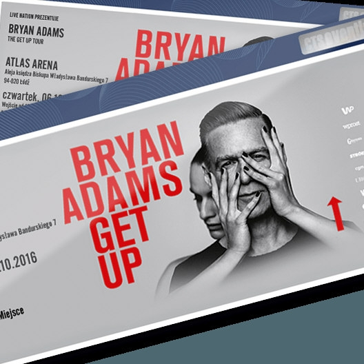 5x podwójny bilet na koncert Bryana Adamsa w Łodzi 6.10.2016 ATLAS ARENA Al. Bandurskiego 7