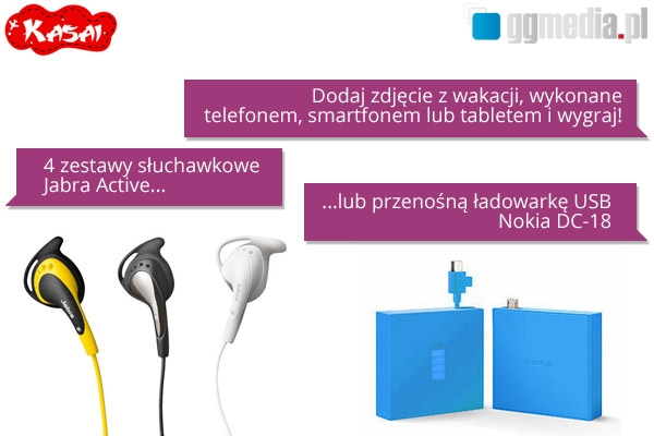 4 zestawy słuchawkowe Jabra Active oraz uniwersalna ładowarka przenośna USB Nokia DC-18