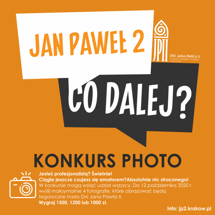 W tym roku temat konkursu brzmi „JAN PAWEŁ II. CO DALEJ?”. Każdy uczestnik może nadesłać na Konkurs maksymalnie 4 prace (format minimum 30×40 cm), lub zwarte tematycznie cykle (do czterech zdjęć), które traktowane będą jako jedna praca. Prace można nadsyłać do 12 października 2020 (decyduje stempel pocztowy).