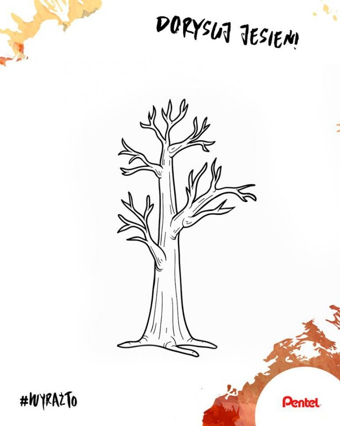 - Dorysować koronę drzewa dowolną techniką na szablonie #WyraźTo