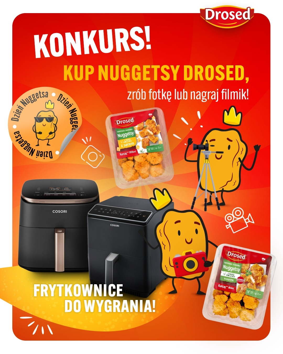 Kupcie nuggetsy Drosed – klasyczne lub serowe – i pokażcie, jak je uwielbiacie! Zróbcie zdjęcie lub nagrajcie filmik z naszymi przysmakami, a najfajniejsze zgłoszenia zgarną nagrody.
