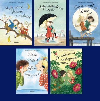 zestawy książek o przygodach Duni, ufundowane przez Wydawnictwo Zakamarki.