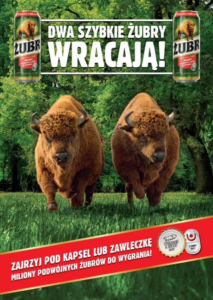 Każdy, kto pod kapslem lub zawleczką znajdzie hasło „2 Żubry 2017”, będzie mógł je wymienić na dwie piwne nagrody