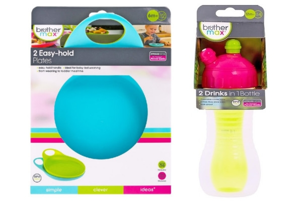 zestaw piknikowy dla malucha: 2 kolorowe talerzyki i butelka 2w1
