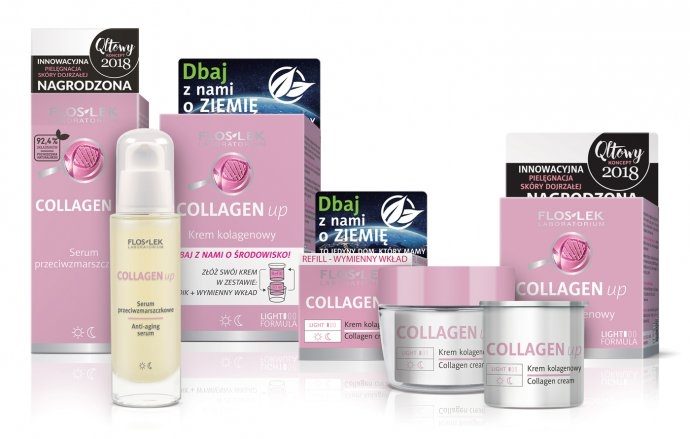 trzy zestawy kosmetyków Floslek z serii Collagen Up
