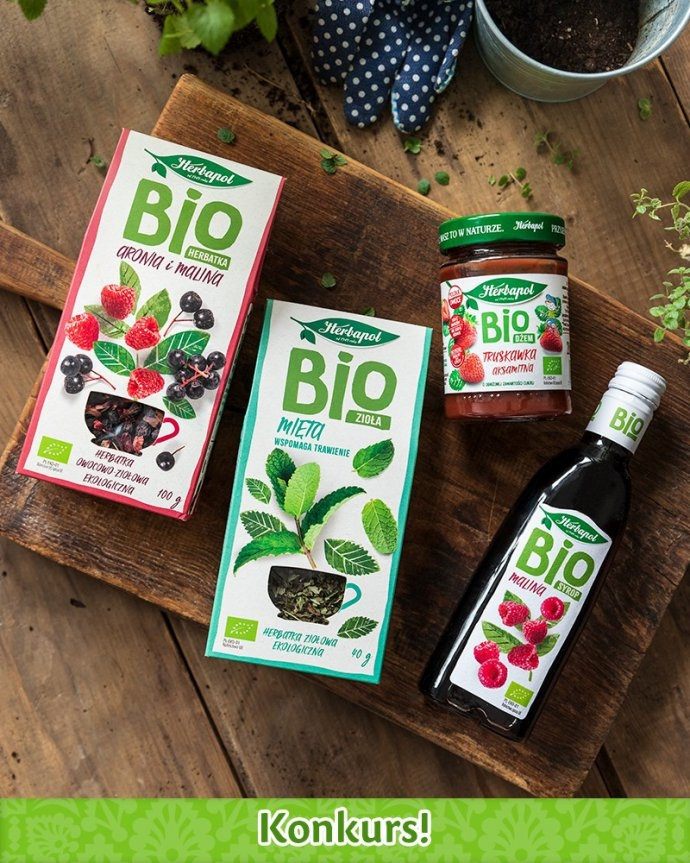10 zestawów produktów Herbapol. Każdy zestaw zawiera 4 produkty Herbapol BIO, w tym: