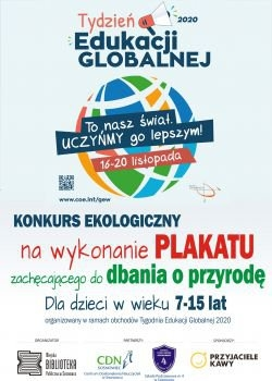 Zagłębiowska Mediateka w Sosnowcu zaprasza dzieci i młodzież w wieku 7-15 lat do udziału w konkursie ekologicznym „Ziemia w naszych rękach”. Konkurs jest organizowany w ramach obchodów ogólnopolskiego Tygodnia Edukacji Globalnej 2020, którego tegoroczne hasło brzmi: „To nasz świat. Uczyńmy go lepszym!”.