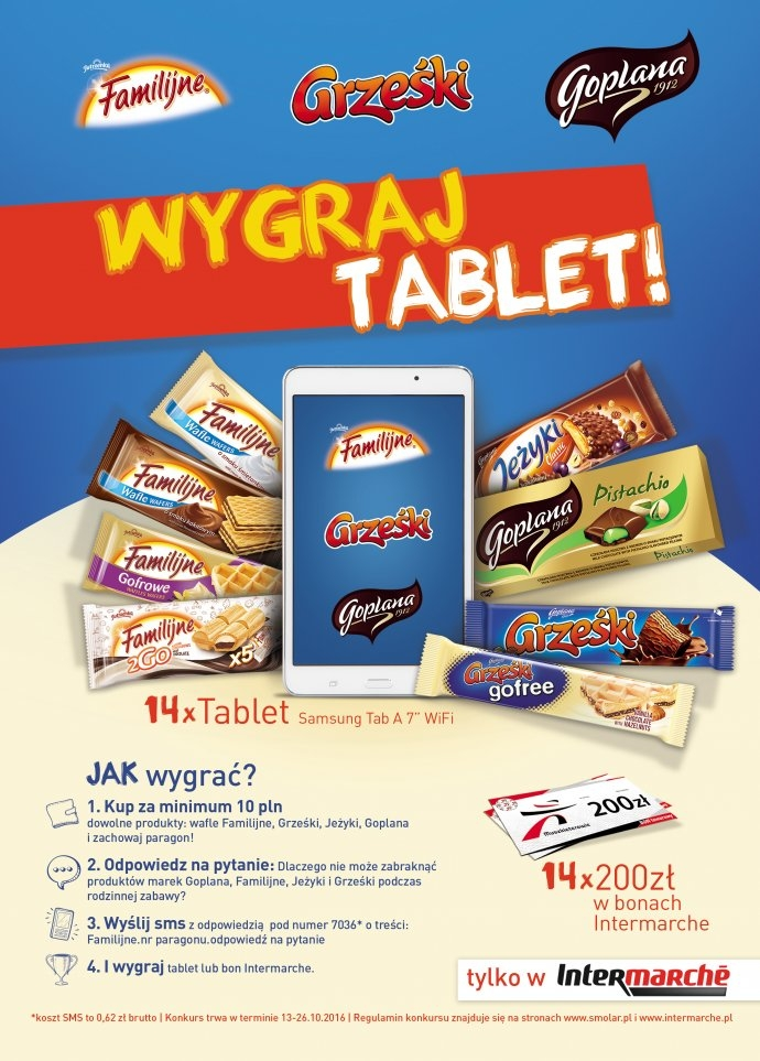 Kup w Intermarche dowolne produkty:wafle Familijne,Grześki,Jeżyki,Goplana i zachowaj paragon.
