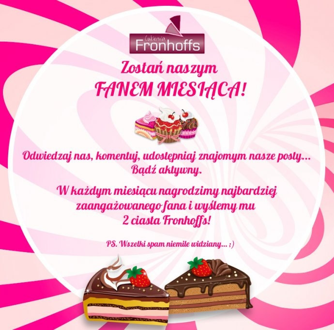 Weź udział w zabawie FAN Miesiąca! Bądź aktywny a nagrodzimy Cię 2 wybranymi przez Ciebie ciastami od Cukiernia Fronhoffs!