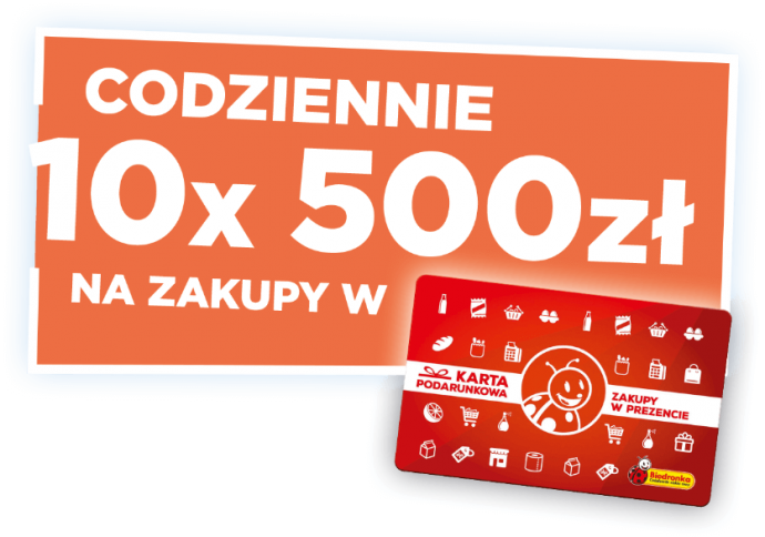 codziennie 10 kart podarunkowych Biedronka o wartości 500 zł