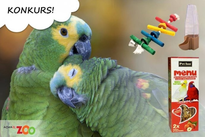 Nagrodami są: poidełko dla papugi, kolba orzechowa dla papugi oraz zabawka dla ptaka.