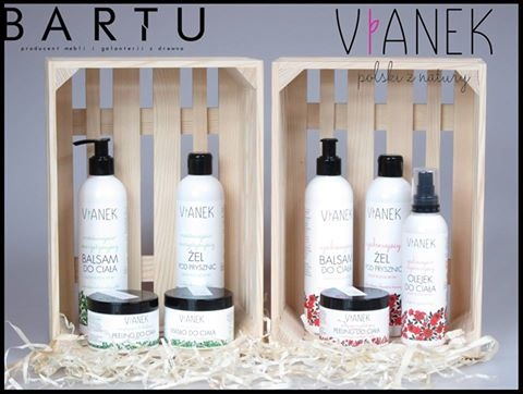 dwa komplety kosmetyków ekologicznych, które znajdują się w skrzynkach firmy BARTU