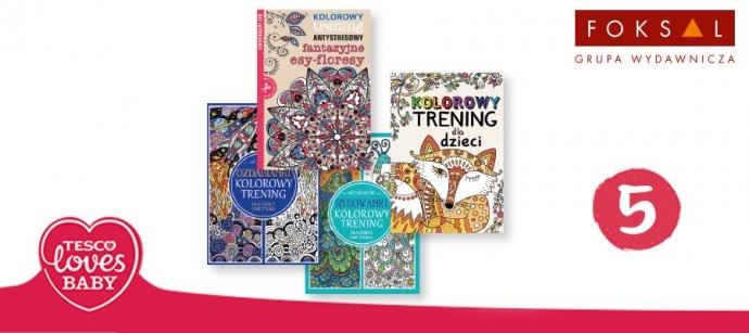 5 zestawów książeczek z cyklu „Kolorowy trening": Ozdabianki, Rysowanki, Kolorowy trening dla dzieci i Fantazyjne esy-floresy