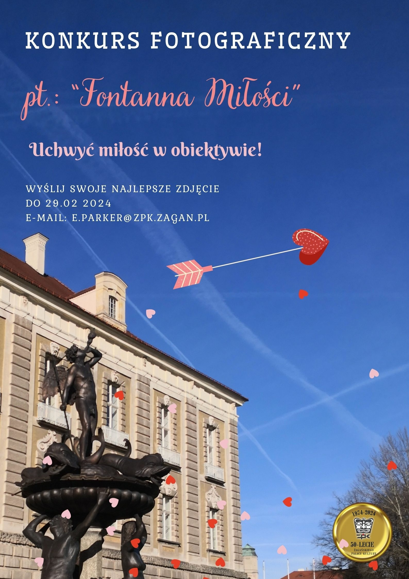 Tematem konkursu jest uchwycenie miłość przy zabytkowych fontannach w Parku przy Żagańskim Pałacu Kultury. Konkurs jest otwarty