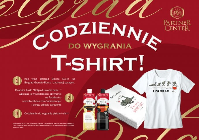 Aby wziąć udział w Konkursie należy zakupić wino Bolgrad, polubić na facebooku funpage Lubię Wino a następnie wysłać poprzez fanpage Lubię Wino (lub adres email konkurs@partnercenter.pl) autorskie dokończenie hasła: Bolgrad uwodzi mnie… wraz ze zdjęciem paragonu, gdzie widnieje zakup wina Bolgrad.