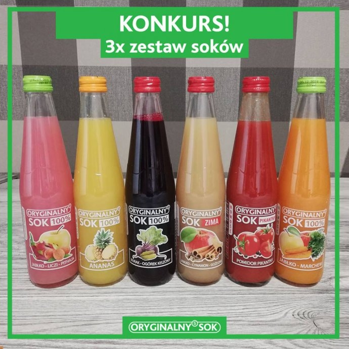 3 najciekawsze komentarze nagrodzimy zestawem soków Oryginalnysok widocznym na zdjęciu (6 sztuk x 330 ml)