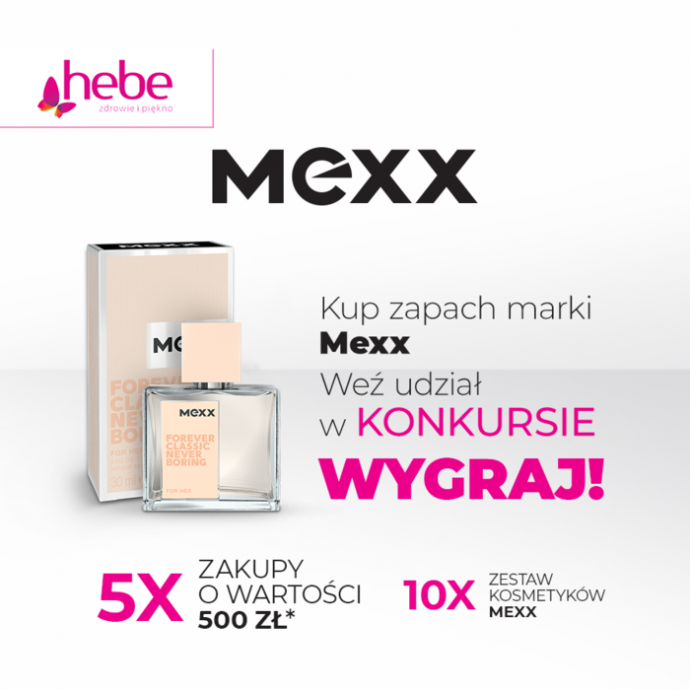 Kup wybrany zapach marki Mexx w drogeriach Hebe w trakcie trwania konkursu i zachowaj paragon.