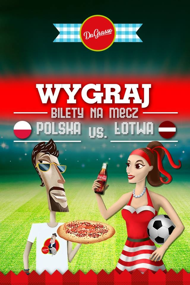 Zamów swoją ulubioną pizzę z napojem Coca-Cola na dagrasso.pl lub w lokalu i wygraj bilety na eliminacje ME 2020 na mecz Polska - Łotwa!