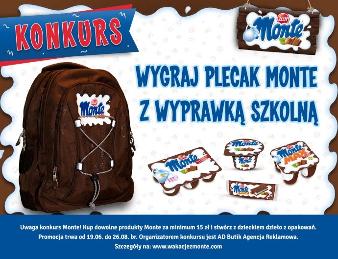Trzeba dokonać zakupu w sieci sklepów Carrefour lub Rast dowolnych produktów Monte Zott za kwotę w wysokości co najmniej 15 zł oraz wykonać zadanie, polegające na wykorzystaniu opakowań po Monte do stworzenia oryginalnego dzieła – rzeźby, zabawki lub instalacji.