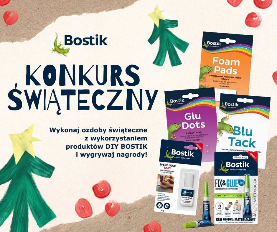 Trzeba przygotować ozdobę świąteczną z wykorzystaniem produktów: Bostik Blu Tack, Bostik Glu Dots, Bostik Foam Pads, Bostik Fix&Glue lub Bostik Speed Glue Easy i w komentarzu pokazać jak została przygotowana!