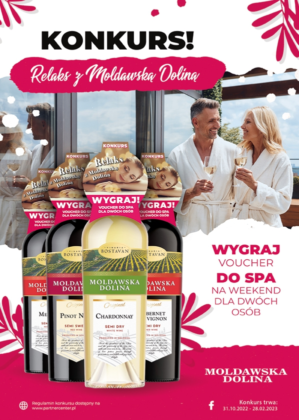 Aby wziąć udział w Konkursie należy zakupić wino Moldawska Dolina, polubić na facebooku fanpage Lubię Wino a następnie wysłać w wiadomości prywatnej fanpage Lubię Wino (lub adres email konkurs@partnercenter.pl)
