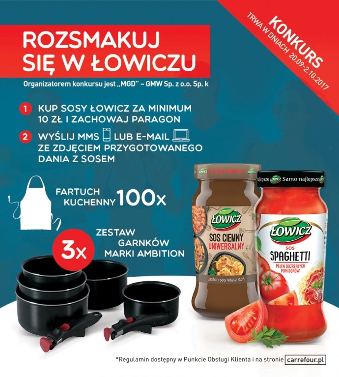 Kup sosy Łowicz za min. 10zł i zachowaj paragon. Wyślij MMS lub e-mail ze zdjęciem przygotowanego dania z sosem.