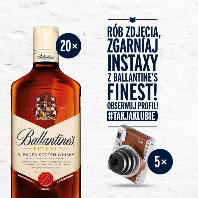 - Dodaj zdjęcie whisky w dowolnym ujęciu z hashtagiem #TAKJAKLUBIE i oznacz na nim @ballantines_poland