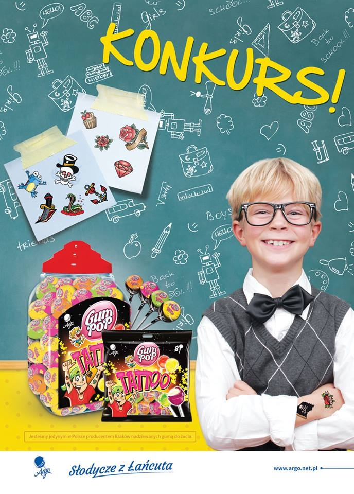 Kochani, jeśli wpadły Wam do ręki tatuaże GUM POP Tattoo, to dobrze się składa, bo możecie wziąć udział w konkursie. Przyklejajcie je, róbcie zdjęcia i przesyłacie do nas. Wszystkie opublikujemy, a internauci "lajkami" zdecydują które są najfajniejsze