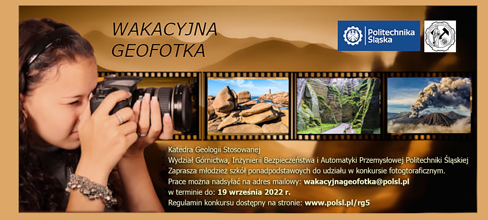 Katedra Geologii Stosowanej zaprasza do udziału w II edycji konkursu „Wakacyjna GeoFotka”. Konkurs adresowany jest do uczniów szkół ponadpodstawowych. Atrakcyjne nagrody rzeczowe zostaną rozdzielone w 2 kategoriach: „Najlepsze zdjęcie obiektu geologicznego” oraz „Najciekawszy opis do zdjęcia”.
