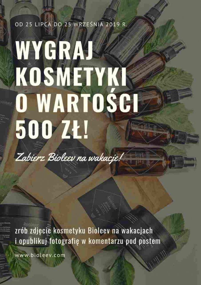 kosmetyki o wartości 500 zł, które zwycięzca konkursu będzie mógł wybrać samodzielnie z oferty sklepu internetowego organizatora: bioleev.sklep.pl
