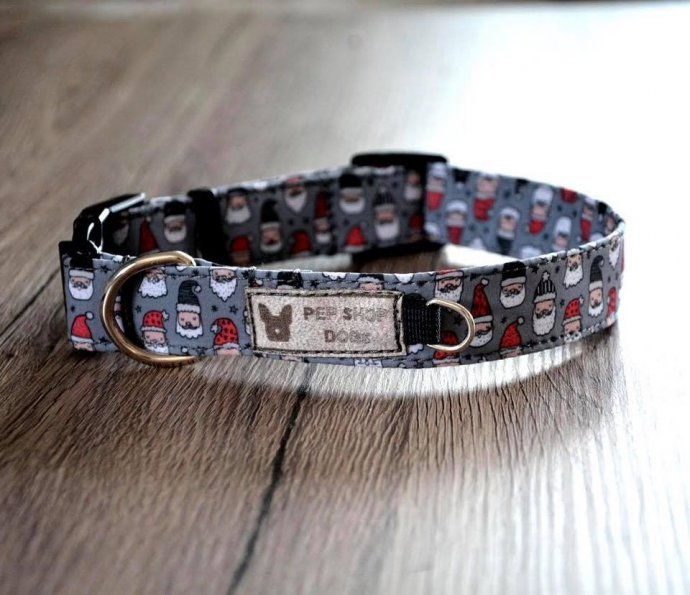 Obroża w mikołajkowy wzór; szerokość obroży: 2,5 cm. Rozmiar:35-50 cm.