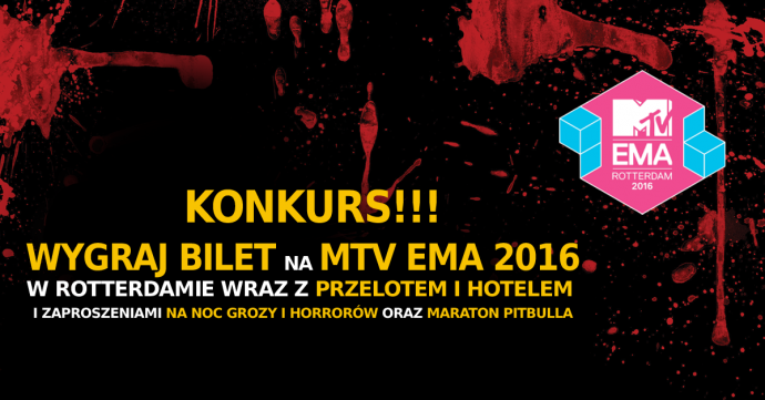 pakiet 3 zaproszeń dla 2 osób: na Noc Grozy i Horrorów 28/10 + na MTV EMA w Rotterdamie 6/11 z przelotem i hotelem + na Maraton Pitbulla 10/11