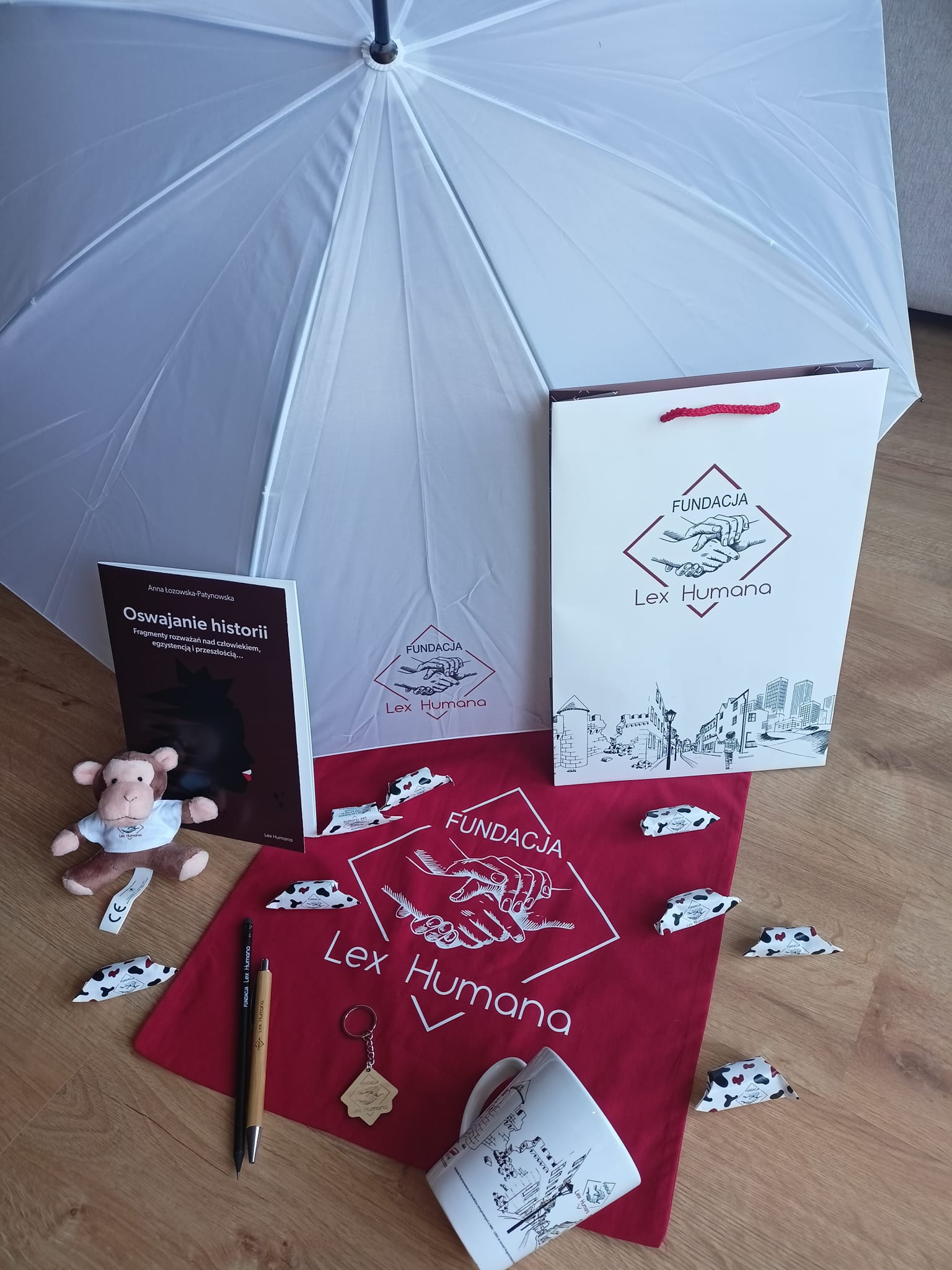 3 zestawy gadżetów z logo Fundacji Lex Humana