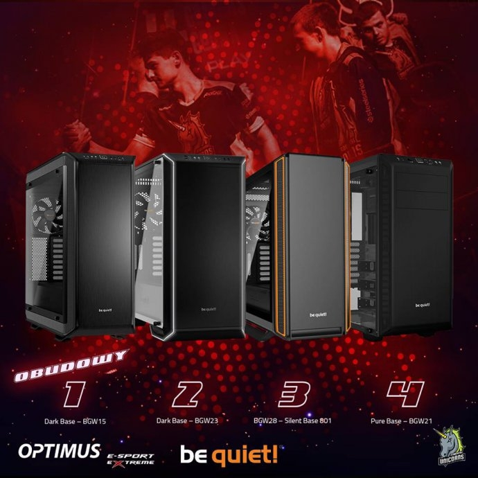 zestaw nagród ufundowany przez partnera, bequiet! oraz Optimus