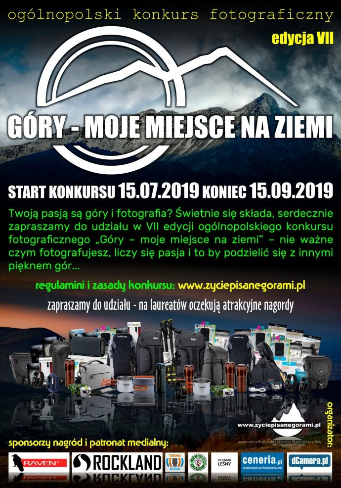 Kochasz góry i wędrówki po nich, twoją pasją jest również fotografia? Serdecznie więc zapraszamy do udziału w siódmej edycji ogólnopolskiego konkursu fotograficznego „Góry – moje miejsce na ziemi” – do podzielenia się pięknem odwiedzonych górskich krain, oraz ich flory i fauny. Konkurs adresowany jest do wszystkich fotografujących, bez względu na poziom doświadczenia, jak i sprzęt którym rejestrujemy zdjęcia. Konkurs rozgrywany jest w trzech kategoriach, powyżej i poniżej 18 lat, oraz w kategorii „Nagroda Publiczności”. W kategoriach głównych poniżej i powyżej osiemnastego roku życia, nagrody przyzna w toku obrad trzy osobowe jury.