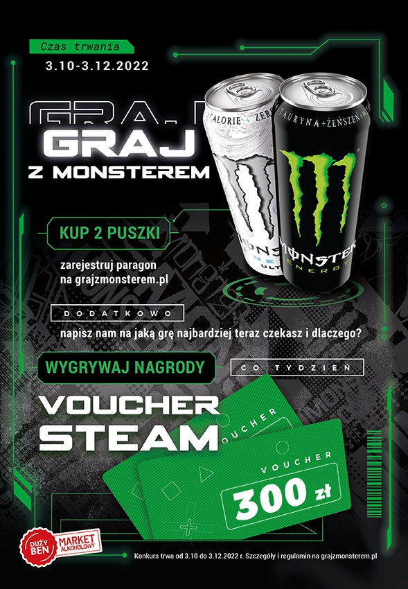 - W sklepie Duży Ben kup 2 napoje Monster, zachowaj paragon.