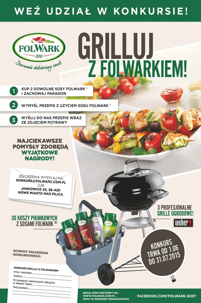 Kotaniec Spółka z ograniczona odpowiedzialnością, Jankowice 43, 26-420 Nowe Miasto nad Pilicą z dopiskiem „Grilluj z Folwarkiem” lub w formie elektronicznej na adres konkurs@folwark.com.pl