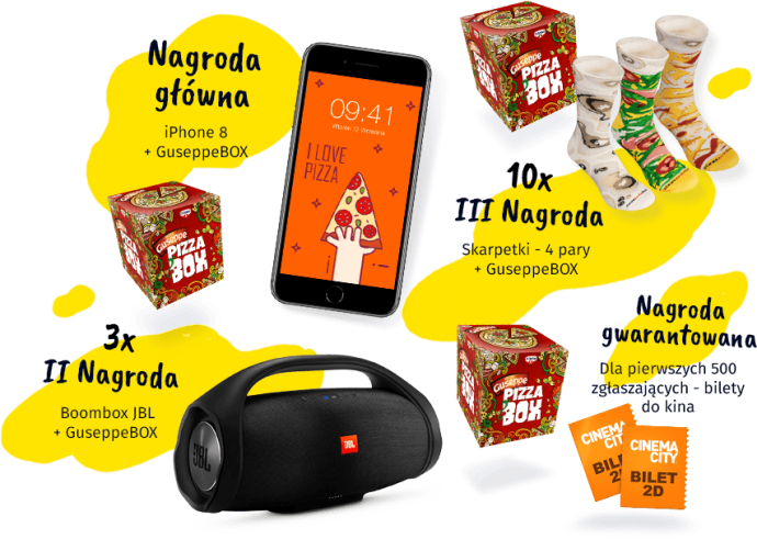 - zestawy w skład których wchodzi: Pizza Socs Box (4 pary skarpetek) o wartości jednostkowej brutto 99 zł oraz Guseppe BOX o wartości jednostkowej brutto 115 zł