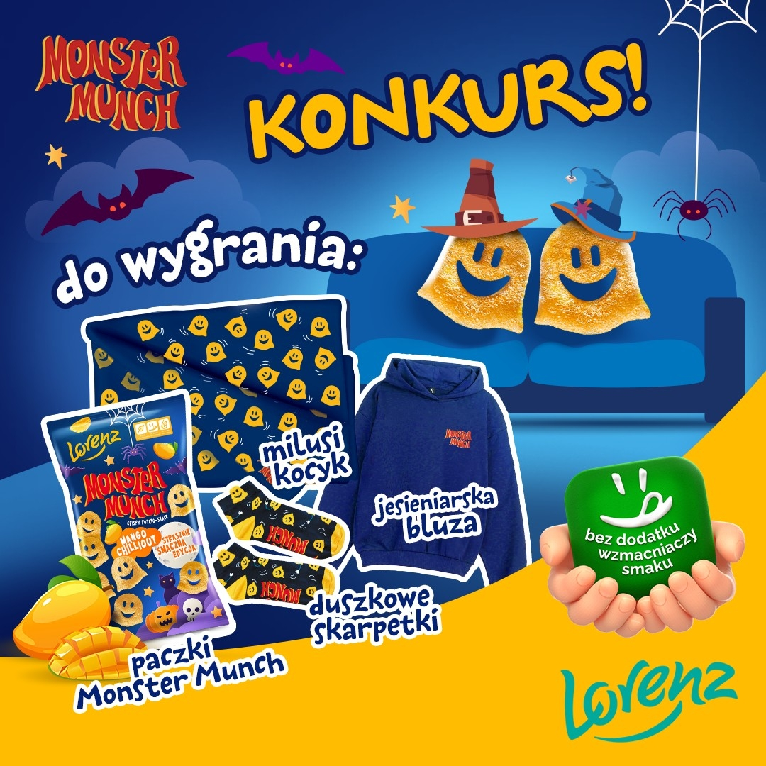 • 10x zestaw chillowy Monster Munch składający się z bluzy Monster Munch, koca Monster Munch, skarpetek Monsgter Munch oraz 5 paczek chrupek Monster Munch - o wartości ok 320,00 zł brutto każdy